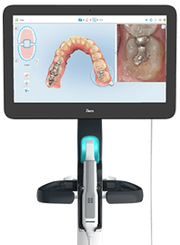 レーザー光でお口の中をスキャンし、歯の型取りをデジタルデータとして取得する装置です。従来の粘土のような印象材を使わず快適な型取りが可能で、短時間で高精度な3Dデータを取得でき、治療前には治療後のシミュレーションも確認できます。マウスピース矯正(インビザライン)の製作や、詰め物・被せ物の精密な製作に使用され、患者さんの負担軽減や治療の質の向上に貢献しています。